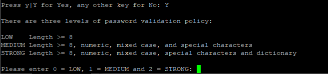 Y를 입력하고, 보안등급은 Medium인 1을 입력한다.
