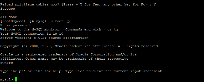 mysql -u root -pMySQL 접속이 잘 된다.