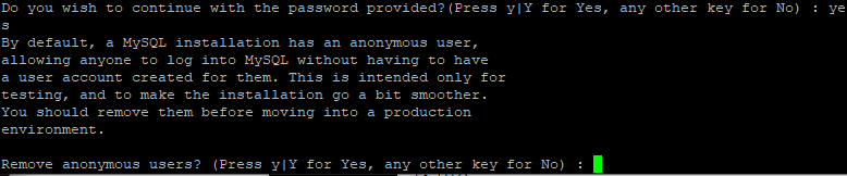 해당 규칙에 맞게 입력하면 이 패스워드로 진행할것이냐 묻는데 Y를 입력해준다.