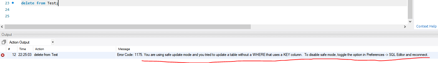 mysql workbench에서 친절하게도 실수를 방지하고자 삭제,업데이트 조건을 걸어두었다.
