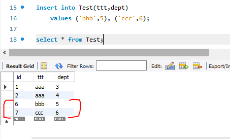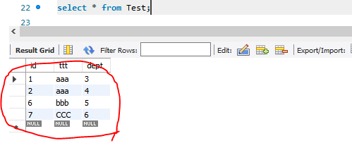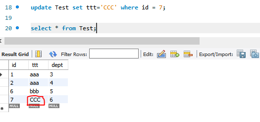 update Test set ttt = 'CCC' where id = 7 쿼리문으로 ccc를 대문자로 변경하였다.