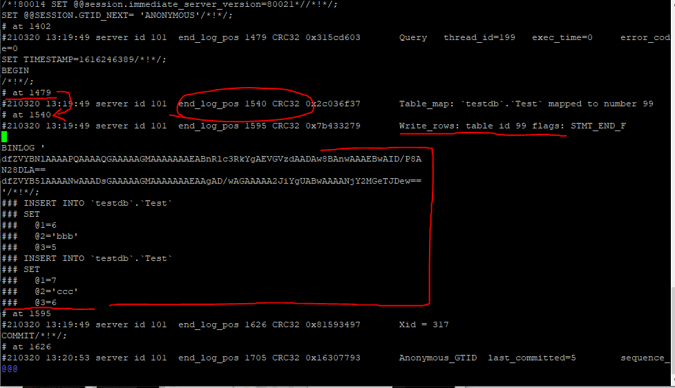 mysqlbinlog --no-defaults --start-position="1479" --stop-position="1939" -d testdb binlog.000005 > t3.log